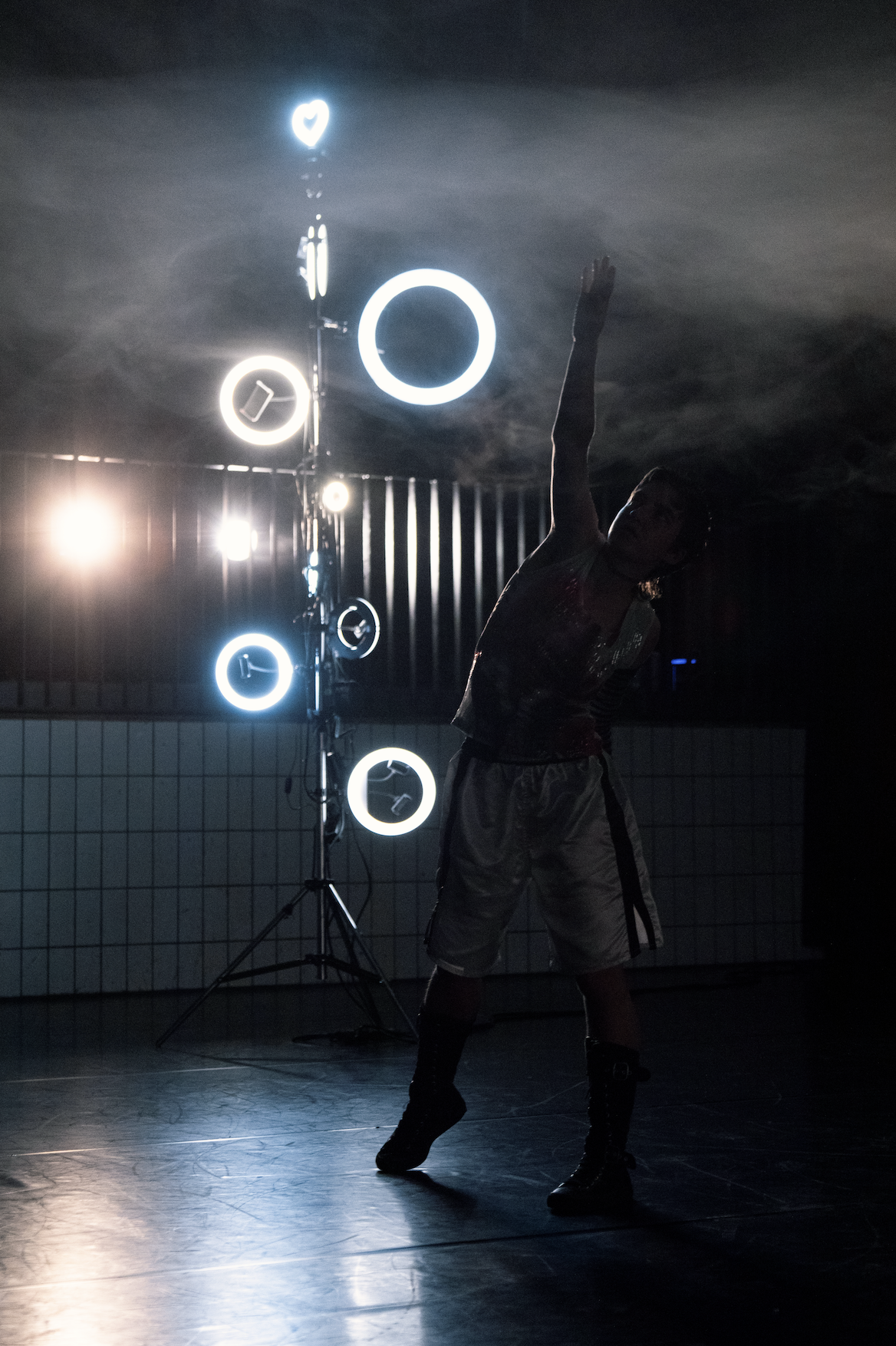 choreography and performance Julie Carrere music Bella Báguena, Bl0u stage design and object Brad Nath dramaturgical support Jette Büchsenschütz light design Bryan Schall production and care Tiphaine Carrere, Agnes Kern styling D0lce Mat photos Gil Corujeira graphic design Jelly Luise